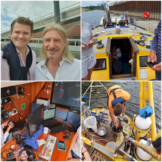 Am 9. Juni legte die ALDEBARAN ab und startete ihre Expeditionsreise von Dresden nach Cuxhaven auf der Elbe. Auf der mehrwöchigen Fahrt untersucht das Forschungsteam die Belastung der Elbe mit Mikroplastik. Auf der Tour von Dresden nach Cuxhaven werden 50 Bodenproben von der Elbe genommen und analysiert. Außerdem beleuchtet es den Zusammenhang von Klimakrise und Plastikproduktion und setzt sich u.a. auch mit Schadstoffen in Lebensmittelverpackungen auseinander. Die Reise wird von der NORDAKADEMIE-Stiftung gefördert. Am Tag 18 der Elbetour kamen Stiftungsvorstand Prof. Dr. Georg Plate und Prof. Dr. Daniel Graewe kurz vor Hamburg an Bord und fuhren gemeinsam mit dem Forschungsteam am Freitag, dem 26. Juni, in den Hamburger Hafen ein.