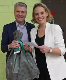 Bildunterschrift: Präsident der NORDAKADEMIE Prof. Dr. Wiedmann und Anke Vogler, Kanzlerin der Hochschule, überreichen die Geschenke bei der diesjährigen Wunschbaumaktion im Kinder- und Jugendhaus Krückaupark.